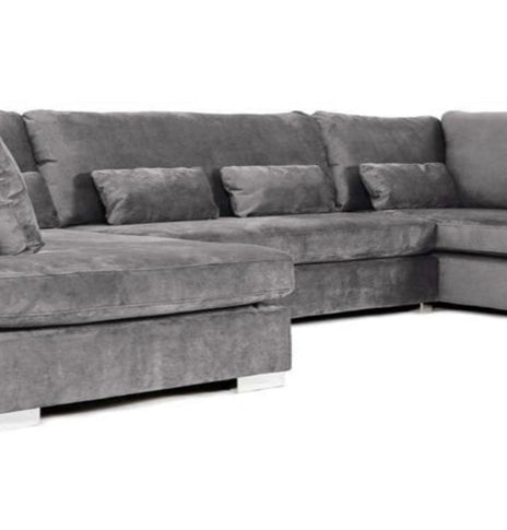 Bishop Platinum Alaska U Shape Sofa Grey Fullback Large Full back design 6 Seats in total Foam-filled seating cushions Chunky box design Sturdy, reinforced, glued frame support One Year Warranty Description Bishop Alaska Fabric corner...